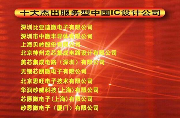 “十大杰出服務(wù)型中國IC設(shè)計(jì)公司”大獎(jiǎng)
